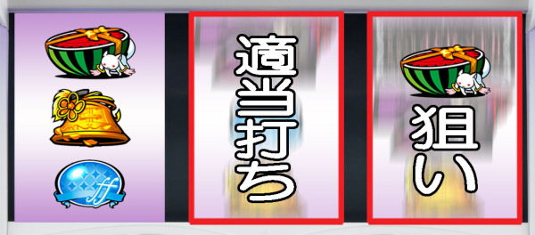 スイカが停止した場合は、中リールを適当打ちし、右リールにスイカ図柄を狙う。