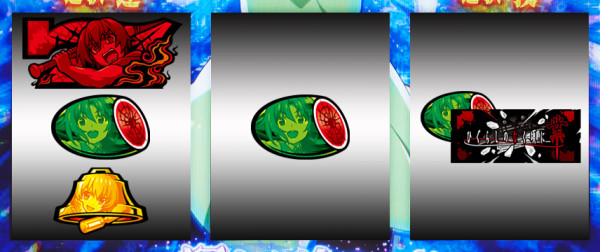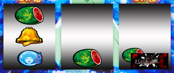右リール中段にスイカorBAR図柄が停止した場合は、中リール枠内に青7図柄を狙いスイカをフォローする。