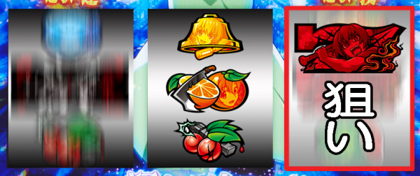 右リール下段にスイカorBAR図柄が停止した場合は、中リール枠内に青7図柄を狙い1枚役をフォローする。