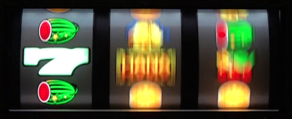 REG CHANCE中は、スイカ入賞でリール左右のランプがフラッシュ。色は、青・黄・緑・赤・レインボーがあり、レインボーなら!?