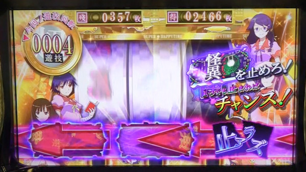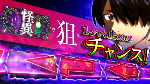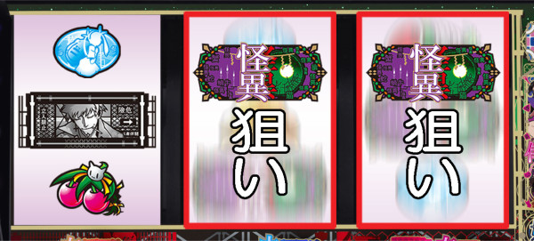 怪異狙えカットイン時は逆押しで怪異図柄を狙い、怪異図柄が停止すればチャンス。
