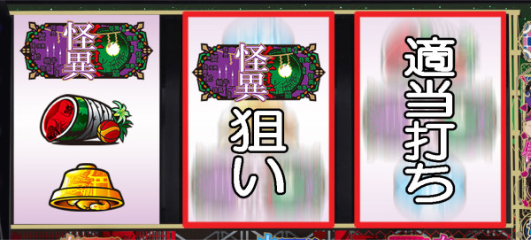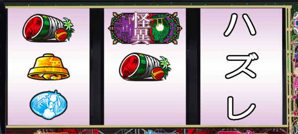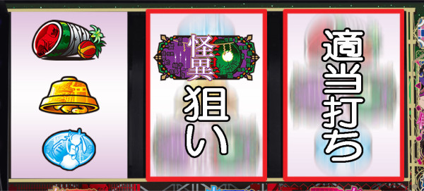 スイカが停止した場合は、中リールに怪異図柄を狙い、右リールは適当打ち。