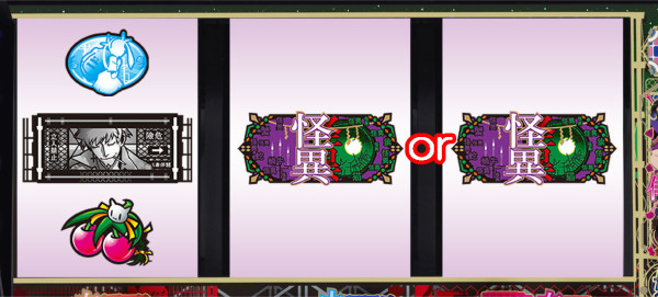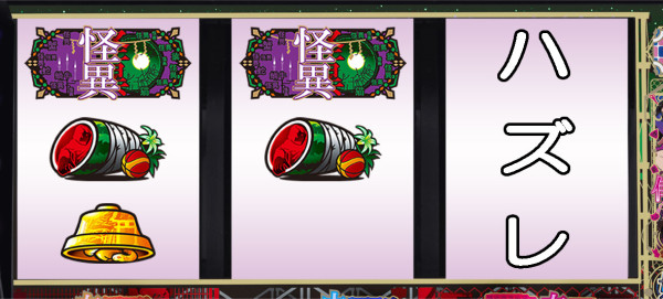 ※中or右リール枠内に怪異図柄停止、かつ小役揃わず