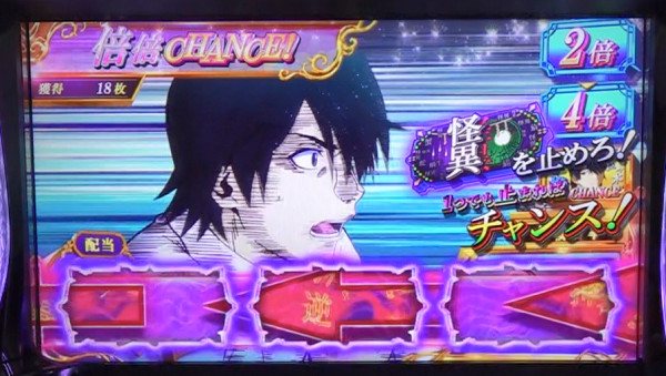 なお、「怪逅ノ儀」高確滞在中の「倍倍CHANCE」当選時は、3ゲーム目の保留に「怪逅保留」が出現する。