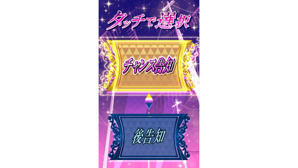 開始時に告知モードを「チャンス告知」「後告知」から選択可能。