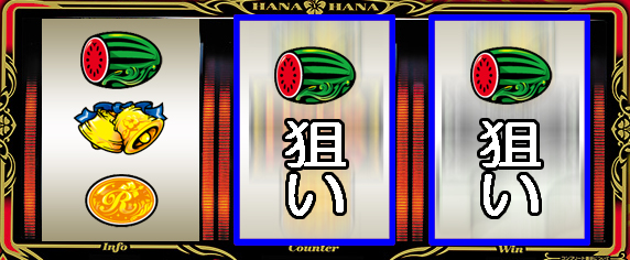 スイカが停止した場合は、中・右リールにスイカ図柄を狙う。