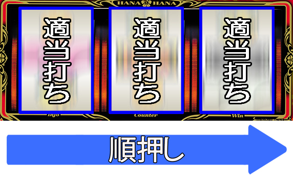 「スイカ・白7・スイカ」が停止しなかった場合は、中・右リールを適当打ち。