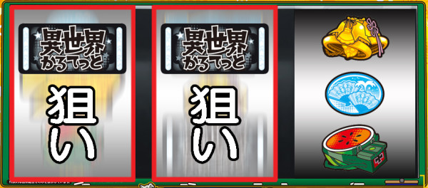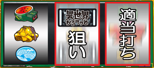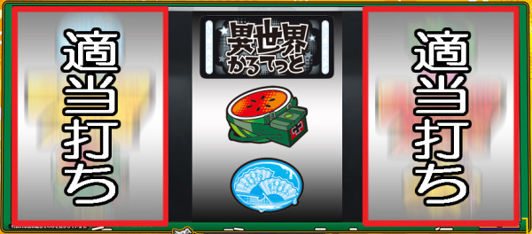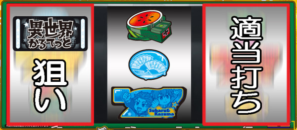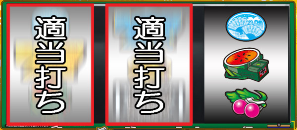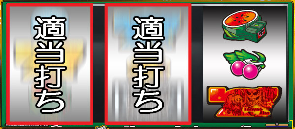 スイカが停止した場合は、中リールにBAR図柄を目安にスイカ図柄を狙い、右リールを適当打ち。