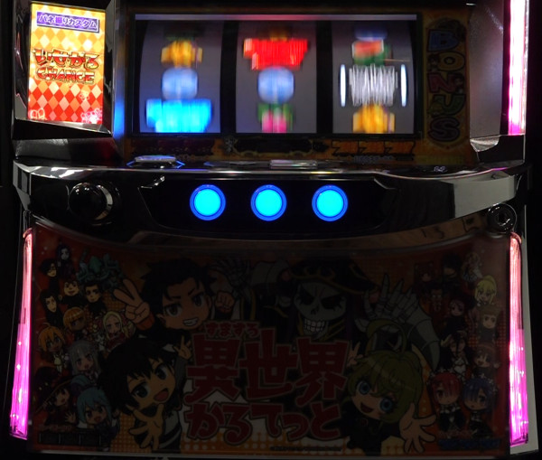 BONUS中にMAXBETボタンを長押しすると、BT中の演出を「いせかるCHANCE」に変更可能。