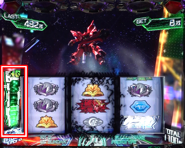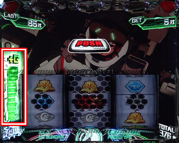可能性役・レア役でリール左側のメーターにポイントを加算。MAXまで貯まればATのゲーム数を上乗せする。