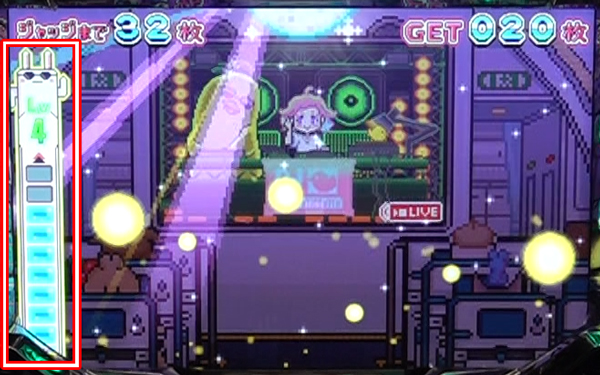獲得したポイントは液晶内左側に蓄積され、10pt獲得ごとにCZ成功期待度に関わる「択当てレベル」が1段階アップする。