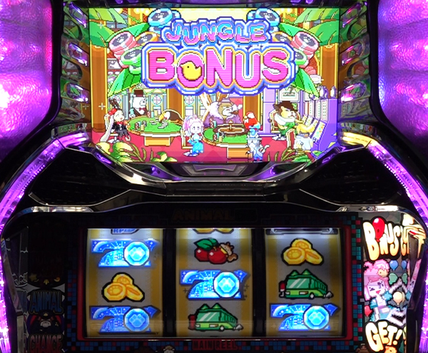 MAXアニマループ中のジャングルボーナスは獲得枚数が300枚+αとなり、平均獲得枚数は約500枚。