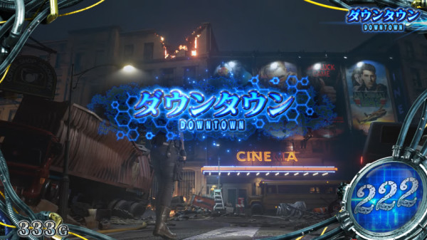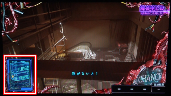 液晶左下にあるビルの階層で前兆ゲーム数を表示。階層が高いほどチャンスで、上層階に到達すればネメシスが登場する。