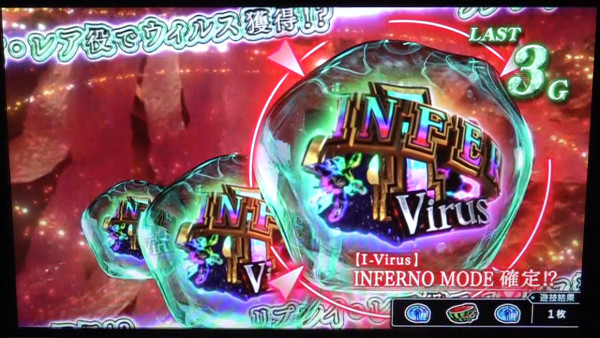 基本的なゲーム性はPANDEMIC CHANCEと同様だが、Iウィルスが出現し感染すれば上位AT「HAZARD RUSH INFERNO」突入濃厚となる。