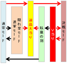 チャンスステージには[隠れ里モード][進軍モード]の2種類があり、それぞれ通常ステージから発展する可能性がある。 -