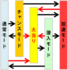 潜伏確変期待度の異なる、3種類のモードが存在する。