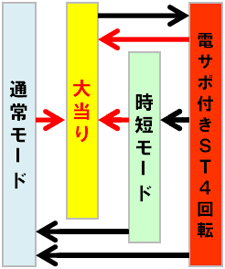 全ての大当り後に突入する、4回転の電サポ付きSTモード。