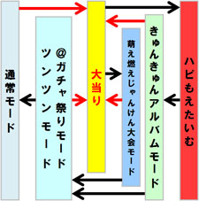 ※「萌え燃えじゃんけん大会モード」終了後は「@ガチャ祭りモード」へ移行※「きゅんきゅんアルバムモード」終了後は「ツンツンモード」へ移行