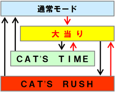 滞在中の大当り後は再び「CAT'S RUSH」へ突入する仕様で、継続率は87%となっている。