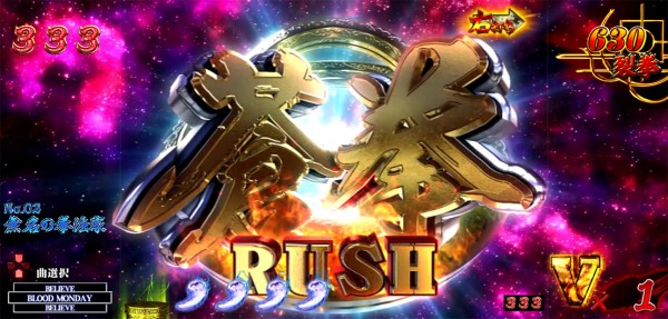 滞在中の大当り後は再び「RUSHモード」へ突入する仕様で、確変突入率は95%。