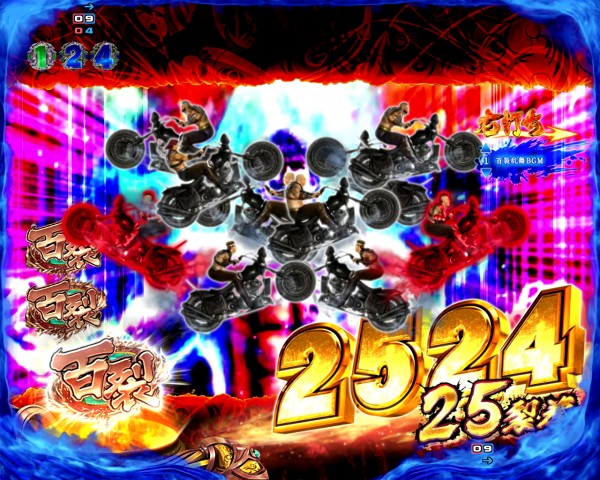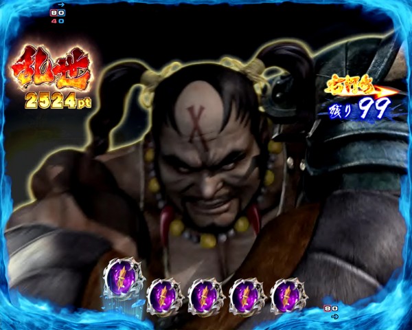 リーチ成立で「乱世バトル」へ突入。強敵とのバトルで展開され、勝利時の50%で「百裂乱舞BONUS」へ突入する。