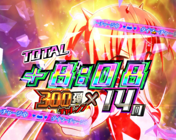 Hysteria Rushは、チャージしたタイマーの残り時間が尽きるまで継続し、タイマー作動中は毎回転 約340発獲得可能な大当りが期待できる。チャージ時間は「1:58~8:08」で、最大 約5,100発の出玉獲得が期待できる。