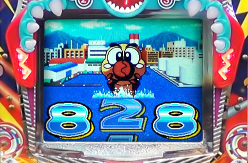 モスラの幼虫が糸を吐いて大当りを狙う。