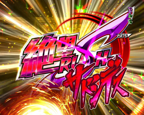 電サポ100回転目には分岐演出が発生。成功した場合は「絶望RUSHサドンデス」へ突入し、大当り(1/73.71)or転落当選(1/200.41)まで電サポが継続する。