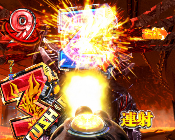 滞在中の大当り後は再び「神バトルRUSH BURST」へ突入する仕様で、トータル継続率は80%。また、大当りは全て1,500発獲得可能な10R大当りとなっており、時短200回転で3,000発獲得可能な振り分けも搭載している。