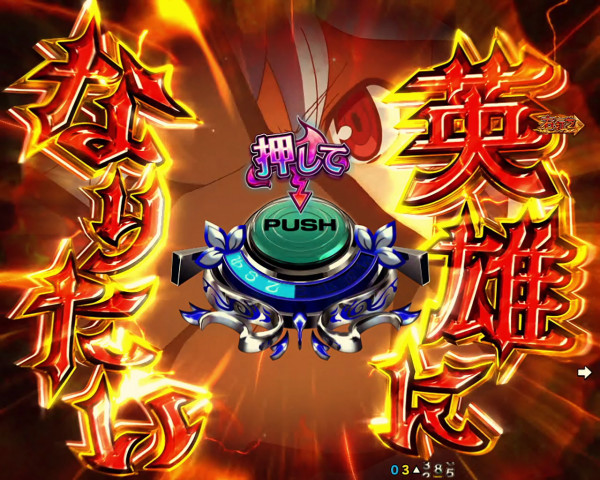 期待度は、「ファイアボルトルート→通常ボタン」なら72.3%。また、「ファイアボルトルート→ヘスティア強ボタン」「英雄の一撃→V-コントローラー」なら大当り濃厚。