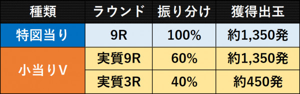 継続率は約79%で、大当りは60%が約1,350発獲得可能な実質9R大当りとなっている。