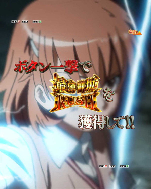 大当り後はボタン演出が発生し、成功すれば「最強御坂RUSH」へ突入。