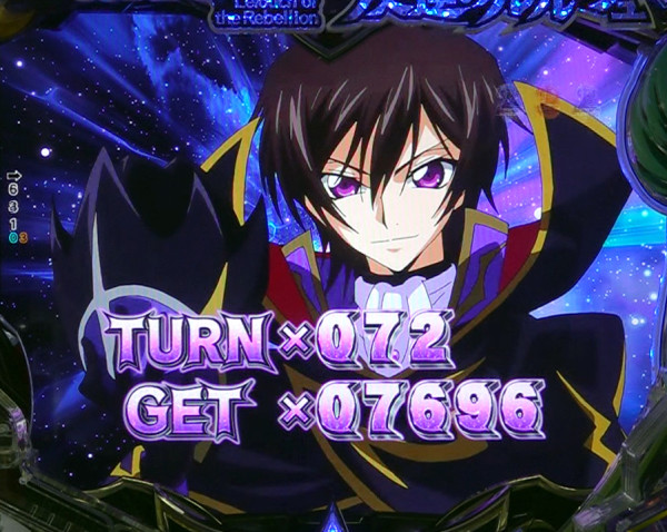 滞在中の大当り後は再びコードギアスチャンスへ突入する仕様で、継続率は約90%。