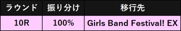 STは「Girls Band Festival!」と「Girls Band Festival! EX」で大当り時の振り分けが異なる。