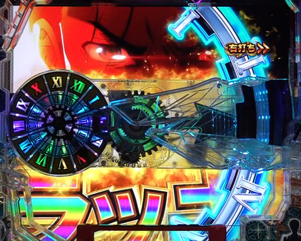 大エフェクトなら期待度 約49.3%。また、文字盤役物が落下すれば大当り濃厚。