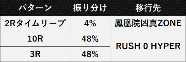 ■大当りの振り分け(「RUSH 0 HYPER」中)
