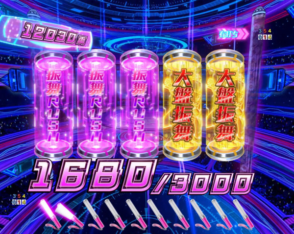 振舞チャレンジボーナス中の演出成功後に突入する、RUSH回数157回のモード。