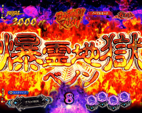 また、大当り時は約50%で3,000発獲得可能で、終了後はST10回転+残保留4個の超バスタードRUSHへ突入する。