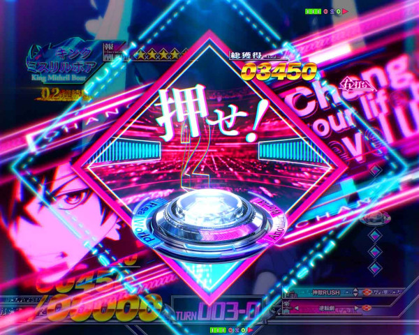 保留入賞時にPUSHボタンが赤くローリングすると、その保留の期待度がアップする。