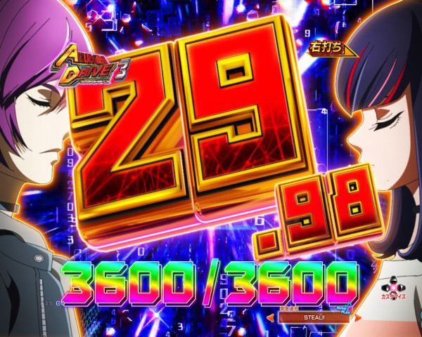 滞在中の大当り後は再びアクダマドライブへ突入する仕様で、継続率は約77%。また、大当り時は全て3,000発獲得可能で、突入時の期待出玉は約13,090発となっている。