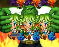 オバケが出現し発展。フランケンが当り図柄を破壊することができれば大当り。