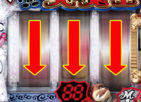 中と左右の図柄が交互にコマ送り。逃げる図柄を追いかける。