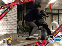 住宅街を走り回る翼を追い詰めたら、PUSHボタン連打で確保する。