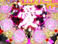 牡丹と薔薇役物が駆動し、チャンスを呼び込むステップアップ予告。