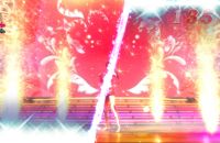 バックスクリーンにデジタル文字やムービー、キャラ紹介、対戦、ライブ映像などが映しだされる。