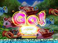 センターにチャンスメダカ停止で発生。変身するメダカの表示により、発展先を示唆。