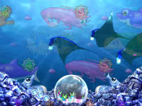 フグが小魚を放出し、ドーム内に小魚をストック。