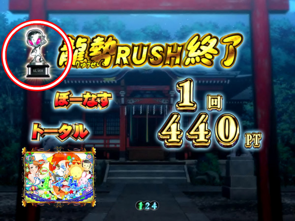 電サポモード「龍勢RUSH」終了時は画面左上に注目。トロフィーの色にも秘密が!?