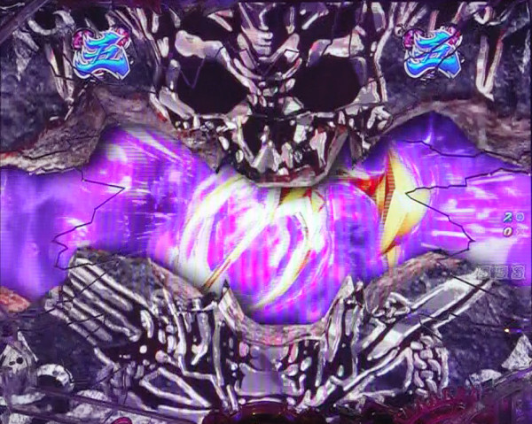弱い展開に怒るサタンが画面を貫き、ボタンPUSHで大チャンス演出が発生する。