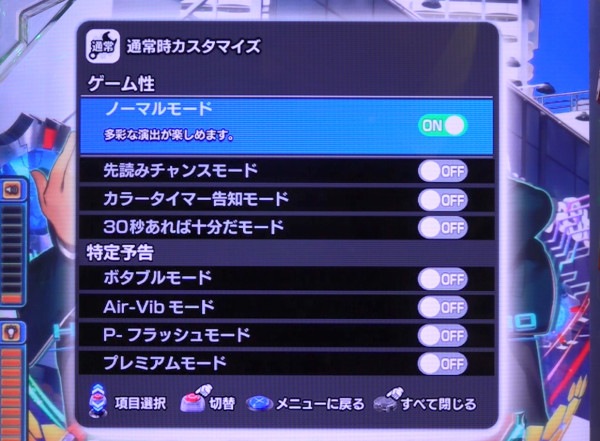 JOYスティックを操作することで「ゲーム性カスタマイズ」「特定予告」がカスタマイズ可能。
